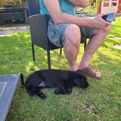 Jetzt ist doch wirklich schon eine Woche vergangen! Die beiden entwickeln sich prächtig und haben ihr Geburtsgewicht mehr als verdoppelt! Kein Wunder bei der gut gefüllten Milchbar 😉😁. Caja ist auch sehr entspannt und genießt sogar inzwischen ein paar ruhige Minuten im Garten in der Sonne, wenn ihre Babies schlafen. Natürlich immer mit gespitzten Ohren!