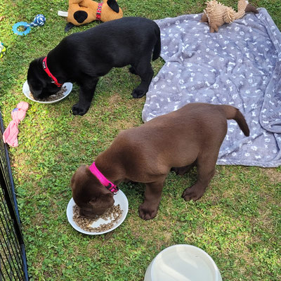 Heute, am 15.06, haben unsere beiden Prinzessinnen ihren royalen Umzug von der Wurfkiste ins Wohnzimmer vollzogen. Nachts dürfen sie aber noch in ihrem Baby-Palais schlummern. Tagsüber sollen sie jetzt die große, aufregende Welt erkunden und uns beim Chaos managen helfen.